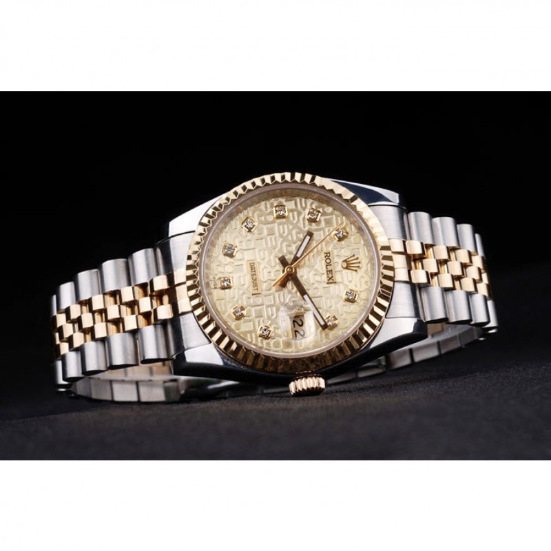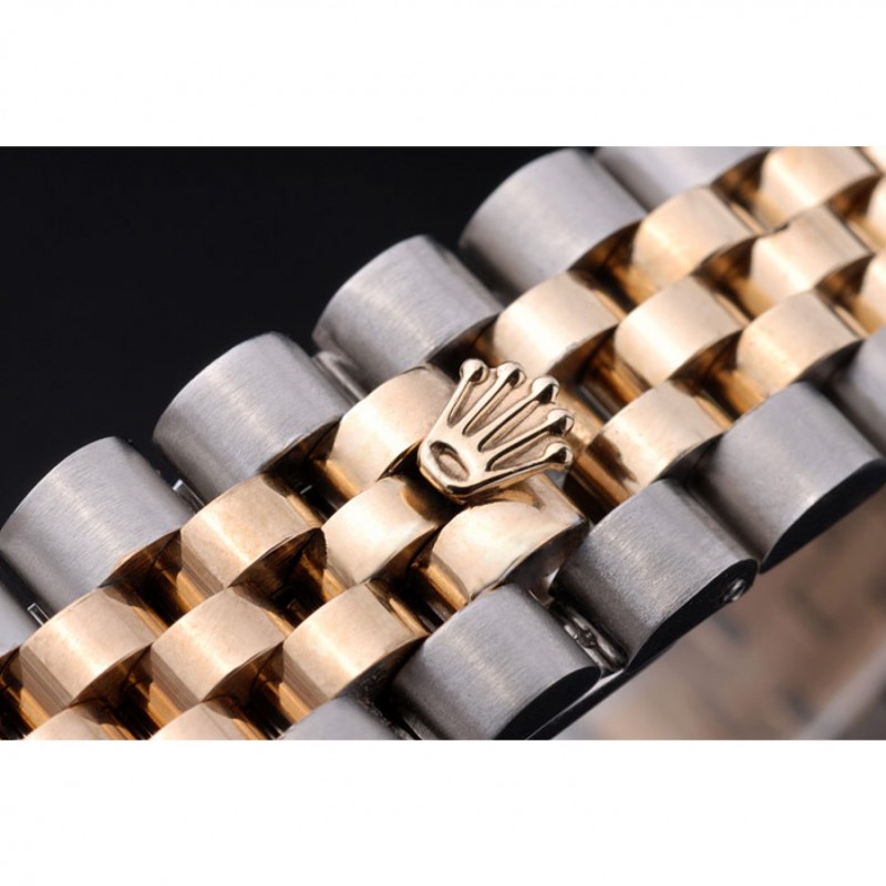 Los Rolex Datejust-rl15 cuentan con un movimiento cinético automático, asegurando que el reloj se mantenga en movimiento sin necesidad de pilas. Su calidad está garantizada por el movimiento japonés Miyota, conocido por su precisión y durabilidad. El estuche de acero inoxidable pulido y la esfera de color dorado hacen que este reloj sea no solo un accesorio práctico, sino también una declaración de estilo. Además, el bisel de acero inoxidables dorado y el brazalete de dos tonos ofrecen un brillo a cualquier conjunto, perfecto para cualquier ocasión.